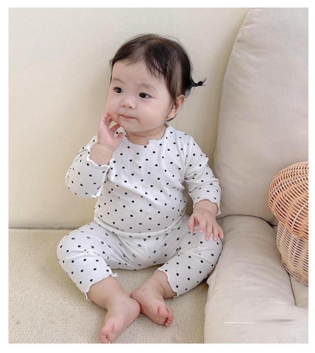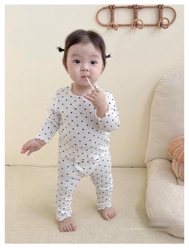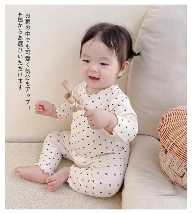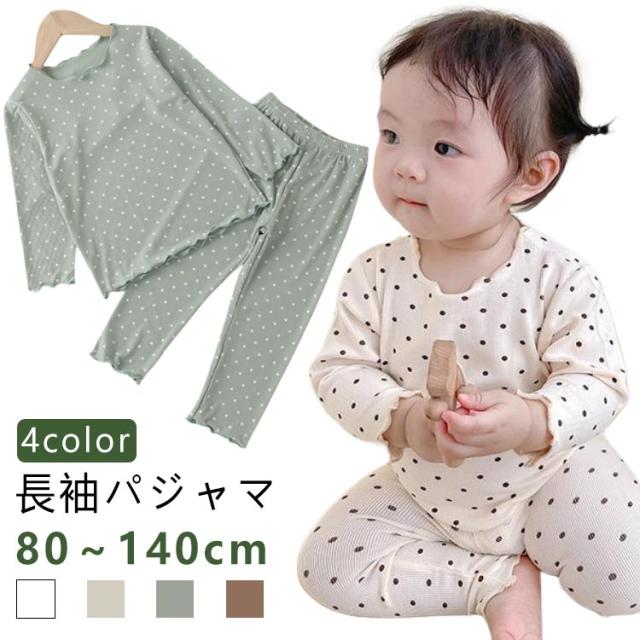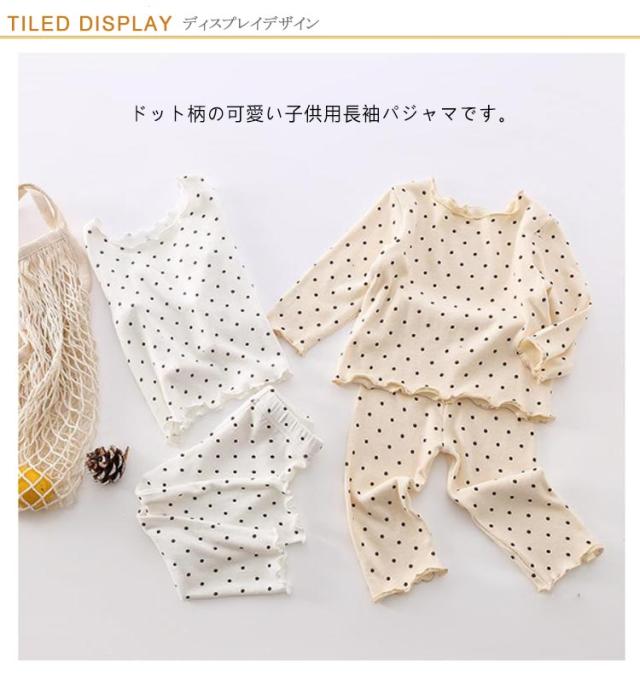 上下 部屋着 ロングパンツ ルームウェア キッズ カットソー 2点セット 長袖 子供 赤ちゃん ボトムス パジャマ メロウフリル ドット柄 水玉模様 トップス かわいい 寝巻き 寝間着 おしゃれ パジャマ 女の子 ナイトウェア 80 90 100 110 120 130