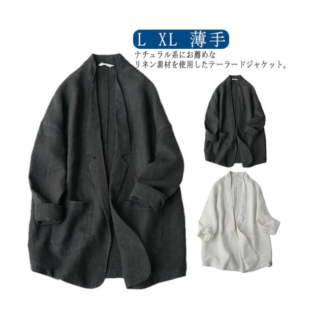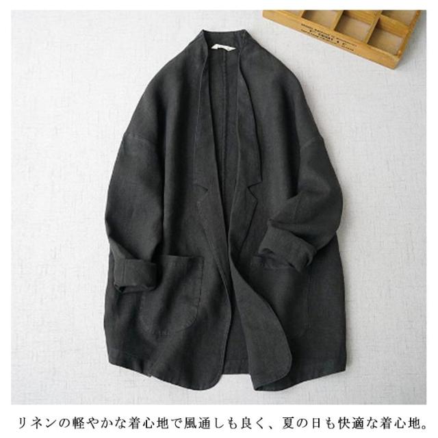 羽織り オーバーサイズ 薄手 テーラード ジャケット 春夏秋 ライトアウター リネンジャケット 麻 ジャケット ゆったり 長袖 リネン 軽い 無地 シンプル 大人 体型カバー サマージャケット