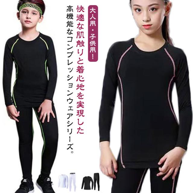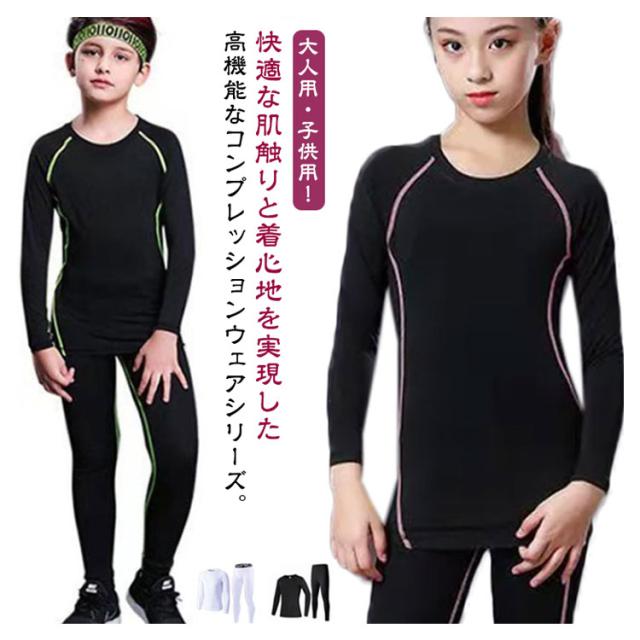 キッズ用 セット 長袖 ロングパンツ コンプレッションウェア インナー 上下セット タイツ スパッツ アンダーシャツ スポーツ アンダーウェア 上着 秋 男の子 女の子 春 夏 アンダーシャツ 吸汗速乾 マラソン ランニング バスケットボール インナー サッカー ゴルフ