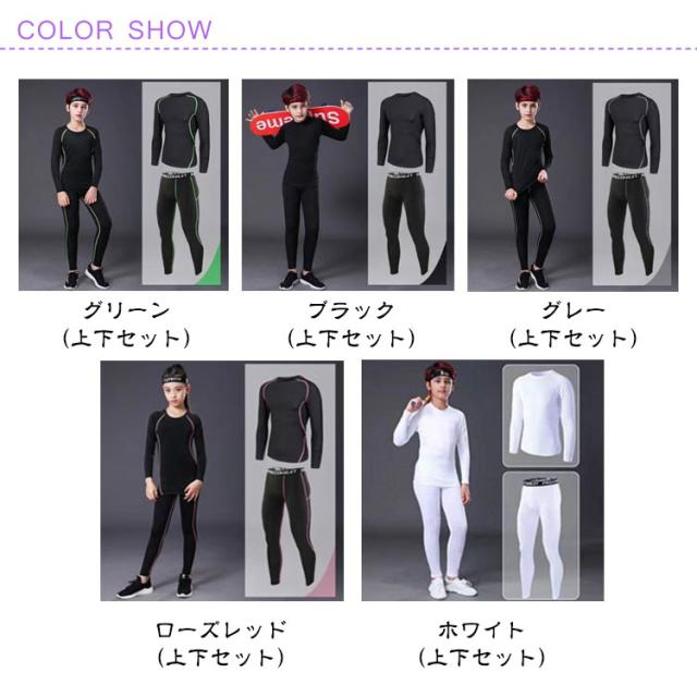 | 大人用・子供用!快適な肌触りと着心地を実現した高機能なコンプレッションウェアシリーズ。 子ども用スポーツウェアセット。様々なスポーツに最適!着心地の良さと機能性を備えたウェアは様々なスポーツやフィットネスにピッタリです。 アスリートのパフォーマンスを最大限に引き出す4方向のパワーストレッチ素材でボディにぴったりフィット。 汗を素早く吸収、発散するクールドライ加工、抗菌防臭加工、ストレッチ性と吸汗速乾性に優れた素材でサラッとした快適な着心地のスポーツインナー。 ストレッチ性に優れ、洗濯時の激しい色落ちがありません。 スポーツ、トレーニング時にコンプレッションウェア、アンダーシャツを着用することにより、筋肉の振動や、揺れを防ぎ、筋肉疲労を軽減します。 | |