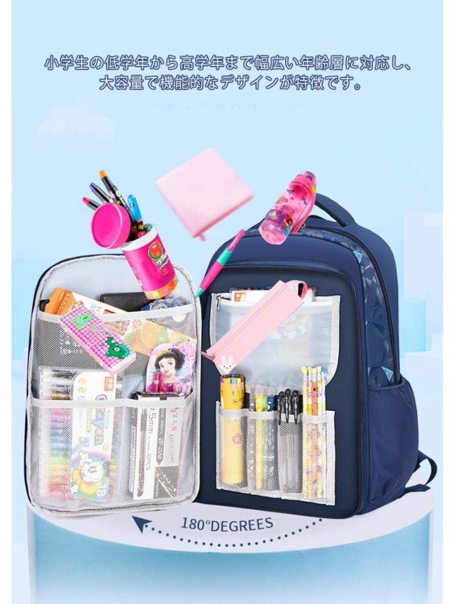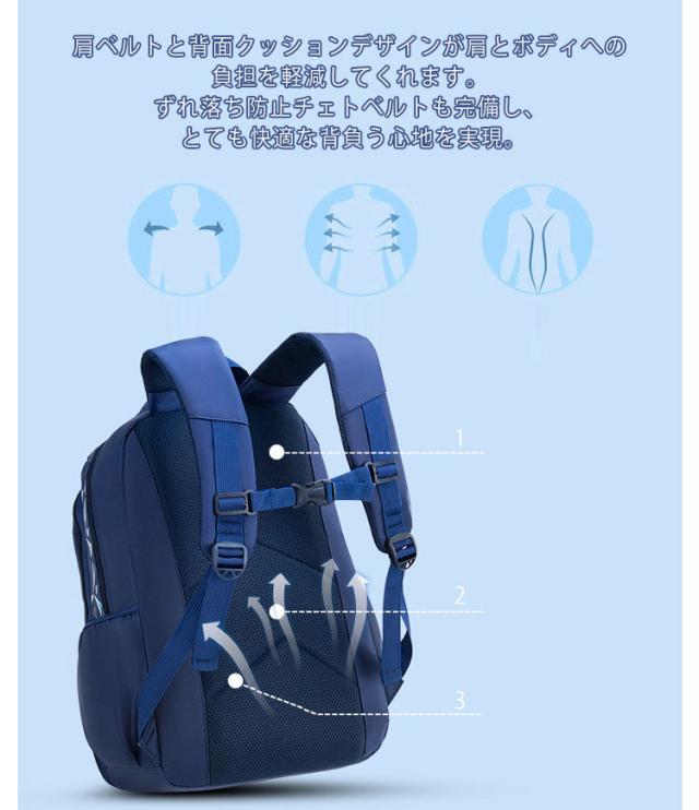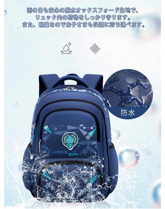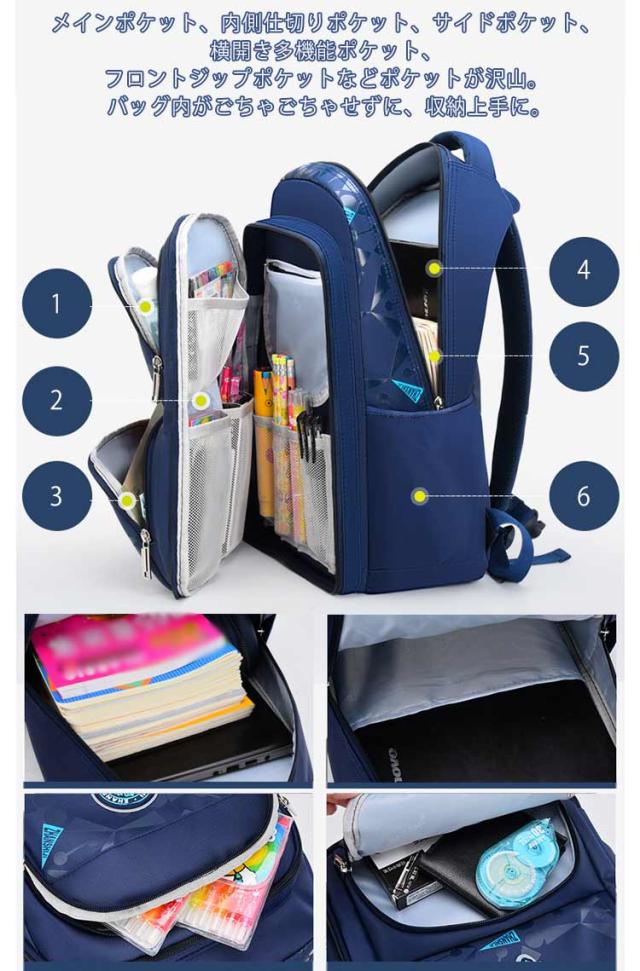 | 教科書や文房具類やスッキリ収納可能♪ 軽くて丈夫な小学生男の子リュック。 小学生の低学年から高学年まで幅広い年齢層に対応し、大容量で機能的なデザインが特徴です。 教科書や厚い本はもちろん、旅行での着替えも収納できる大容量バックパック、学習や塾通い、習い事、遠足、旅行などこれ一つで活躍できる軽くて丈夫な素材のキッズリュックです。 雨の日も安心の撥水オックスフォード生地で、リュック内の荷物をしっかり守ります。また、軽量なのでお子さまも快適に持ち運べます。 メインポケット、内側仕切りポケット、サイドポケット、横開き多機能ポケット、フロントジップポケットなどポケットが沢山。バッグ内がごちゃごちゃせずに、収納上手に。 肩ベルトと背面クッションデザインが肩とボディへの負担を軽減してくれます。ずれ落ち防止チェトベルトも完備し、とても快適な背負う心地を実現。 | |