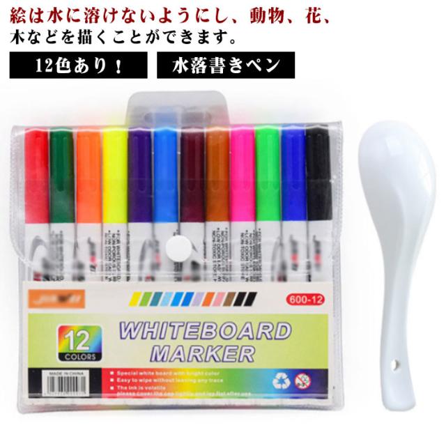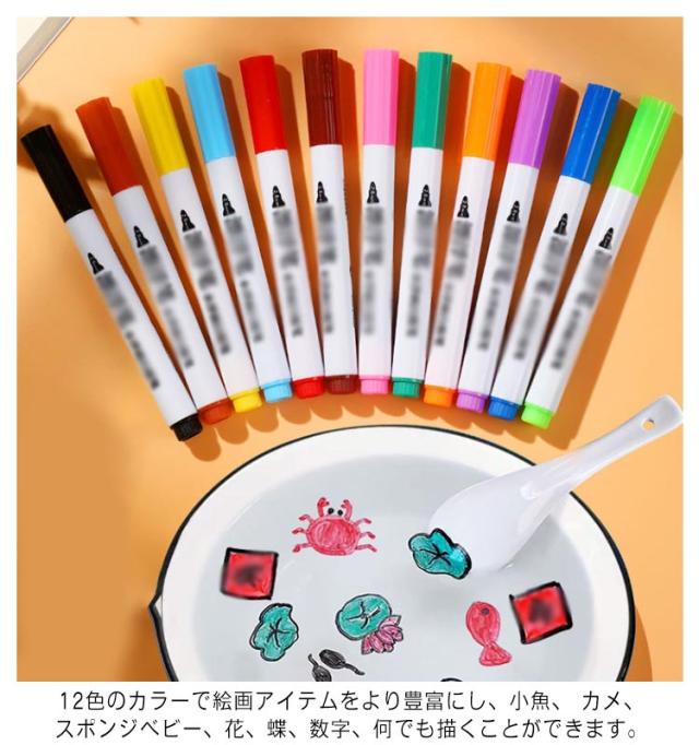 ホワイトボードマーカー フローティングペン 12色あり!水彩画ペン 水中でのDIY描画落書き 水フローティングペン スプーン 水落書きペン ギフト