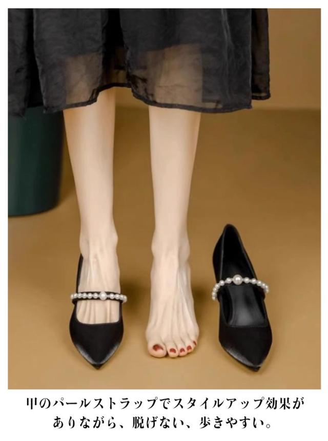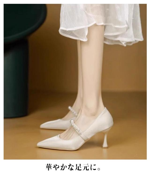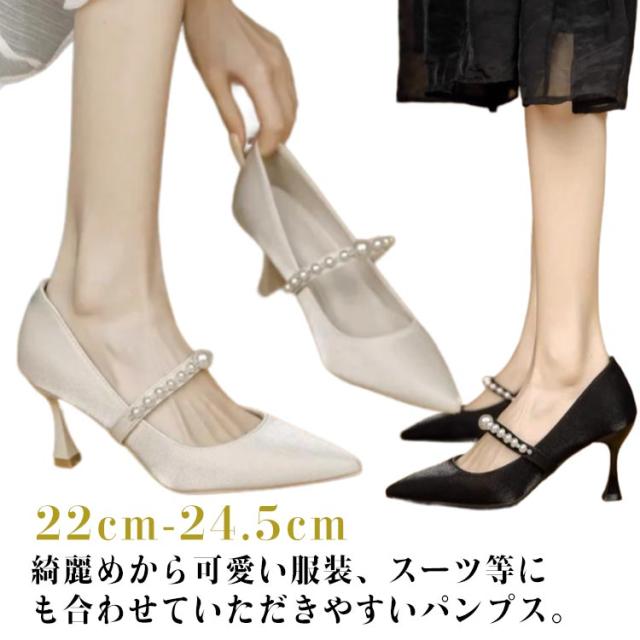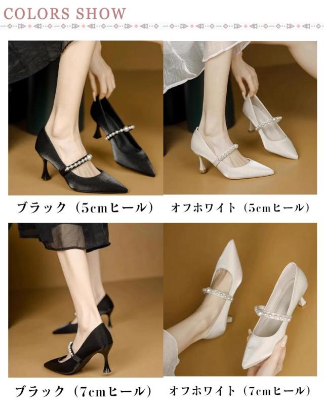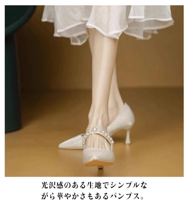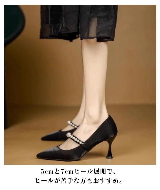 パンプス パンプス ハイヒール パーティー 靴 光沢 5cmヒール パンプス パールストラップ レディース 脱げない サテン 披露宴 二次会 フォーマル 結婚式 パンプス 20代30代40代 成人式 結婚式 春 夏 秋冬 パーティドレス ヒールパンプス 同窓会