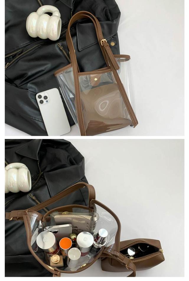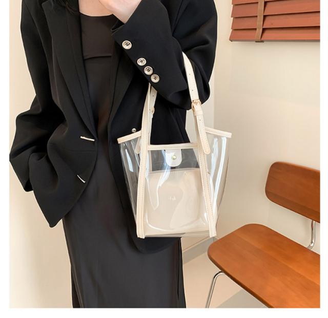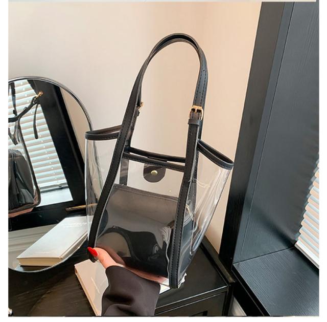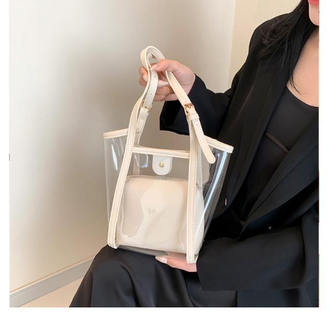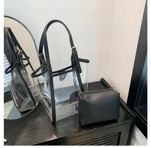 | 2WAYクリアバッグ。 インナーバッグ付き、中身が見えることなく安心です。 インナーバッグ単体でポーチとしてもお使い頂けます。 日常使いやレジャー、プール、海、スポーツ、スパ、温泉などあらゆるシーンで便利に使える2WAY透明バッグです。 | |