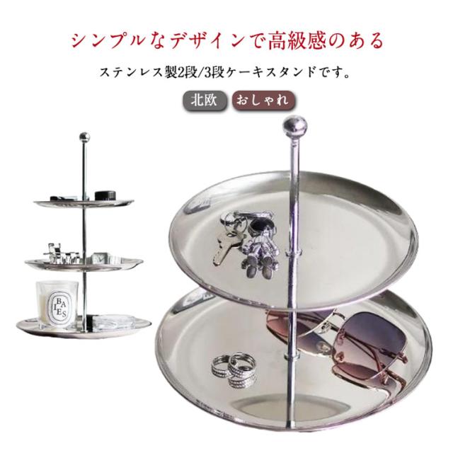 2段 コンポート ケーキスタンド シルバー ケーキプレート ステンレス 北欧 モダン ケーキスタンド おしゃれ 高級感 3段 ケーキトレー スタンド ケーキ アクセサリー 収納 ディスプレイ インテリア カフェ ティータイム クリスマス