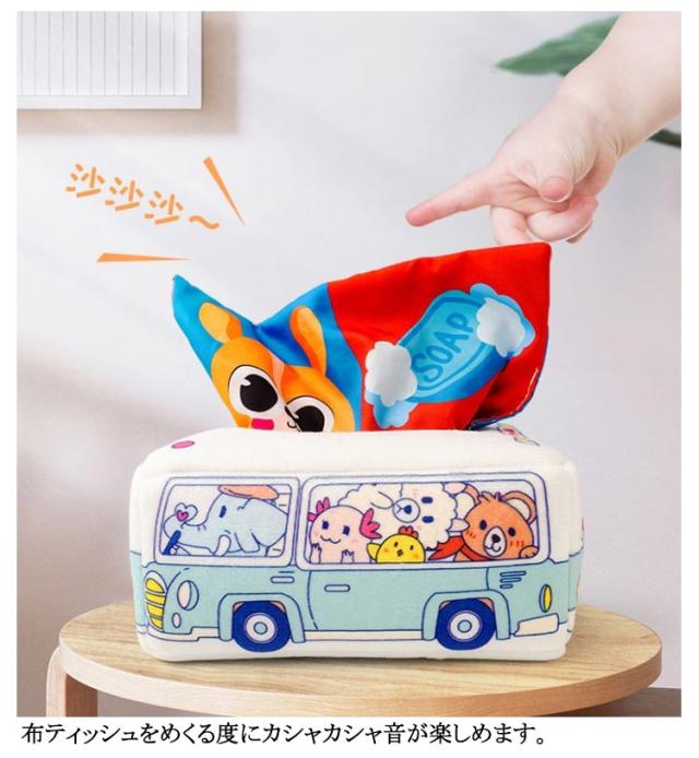 布絵本 布 カシャカシャ ティッシュケース おもちゃ 音 トイ ティッシュボックス 知育玩具 ティッシュ 車形状 布ティッシュ おもちゃ 色認知 モンテッソーリ 指先訓練 感覚開発 ベビー 仕掛け絵本 赤ちゃん 女の子 男の子 0歳