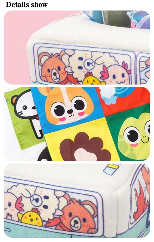 | 指先訓練?色認知?感覚開発用の知育玩具。 知育効果いっぱい!遊んで育つ!ティッシュペーパーの持ってを真似することで、楽しみながら指先をたくさん使うと思考力・記憶力・運動能力など様々な脳の発達を促成します。 色の認識:カラフルな色彩で、色々な可愛い動物柄が入っており、子供から大人まで気に入って使っていただけるよう、いろいろなカラーバリエーションを取り揃えております。 布ティッシュをめくる度にカシャカシャ音が楽しめます。 洗濯可能!清潔に保てます:洗濯機のソフト洗いコースや手洗いができるので衛生的。清潔に保てるので気軽に遊べたり、布の優しい肌触りを楽しめます。綺麗になったら、風通しのよい場所に並べて乾かしましょう。 安心、安全な素材:エコの素材を使用し、耐久性はもちろん、環境にも優しい素材です。さらに当製品は塗料に水性塗料を使用しております。食品衛生検査もしており、お子様の健康を第一に考えた製品となっております。 ティッシュケースの設計・収納便利:他の小物も入れることができます。軽量で持ち運びに便利。 | |