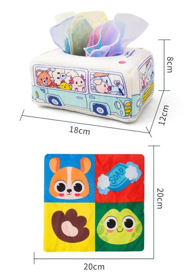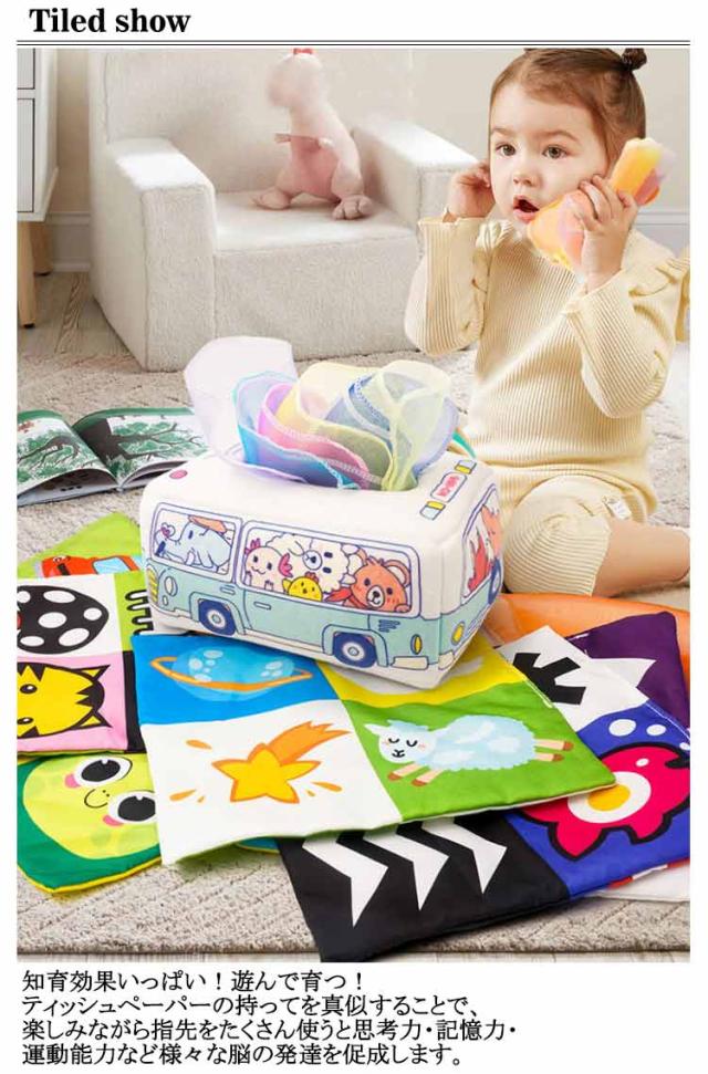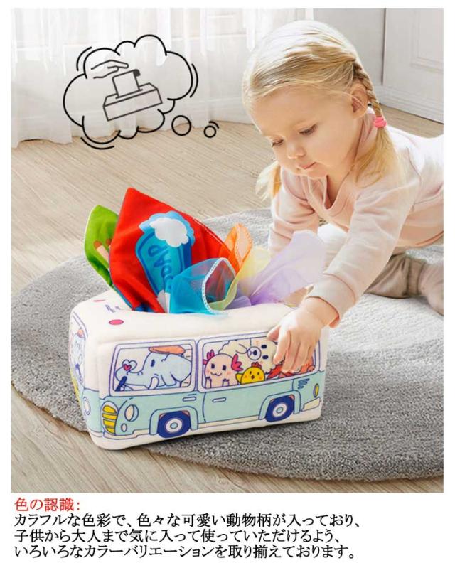 ベビー 布ティッシュ ティッシュボックス おもちゃ おもちゃ 音 ティッシュ 布絵本 布 ベビー 車形状 モンテッソーリ ティッシュケース トイ 指先訓練 カシャカシャ 色認知 感覚開発 仕掛け絵本 赤ちゃん 女の子 男の子 0歳