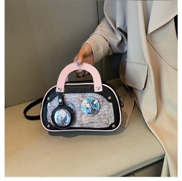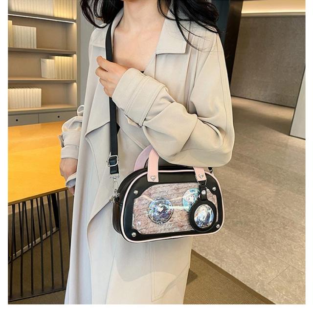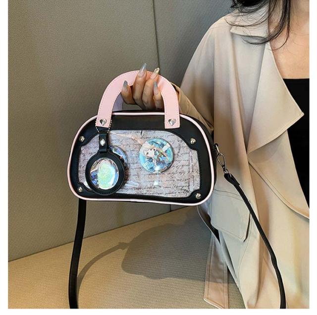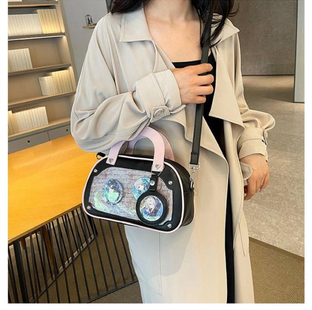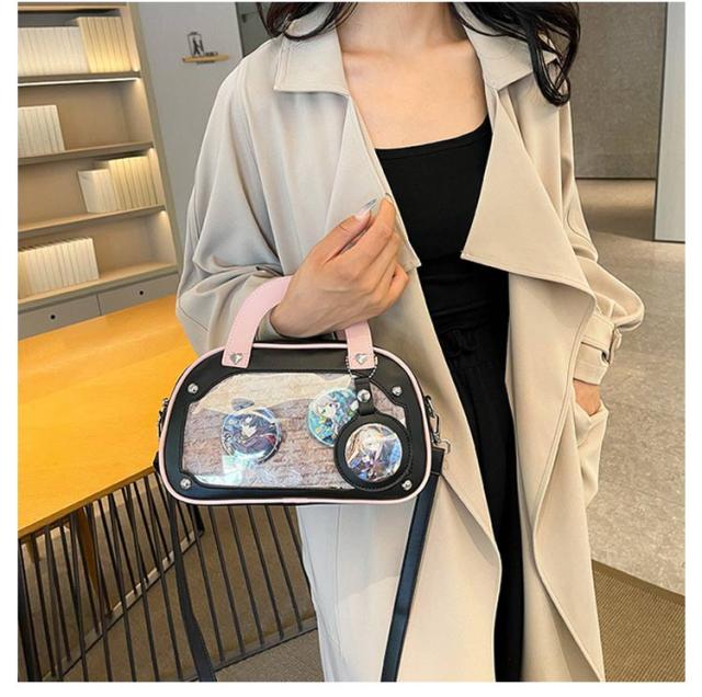 ショルダーバッグ 推しバッグ 痛バッグ トートバッグ 小さめ 推し活 レディース 痛バ 2WAY 透明窓 缶バッチ クリアバッグ 痛バック デコバッグ 推し 可愛い 痛バッグ オタク活 オタクバッグ