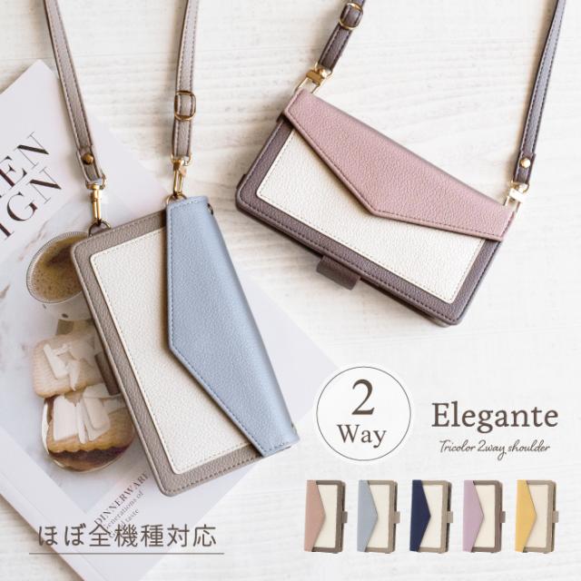 公式 Elegante スマホケース 手帳型 スマホケース 全機種対応 iPhone17 16e 16 15 14 13 se xperia10 1 5 vi v AQUOS sense9 8 7 wish4 pixel 9a 8a トリコロール ショルダー