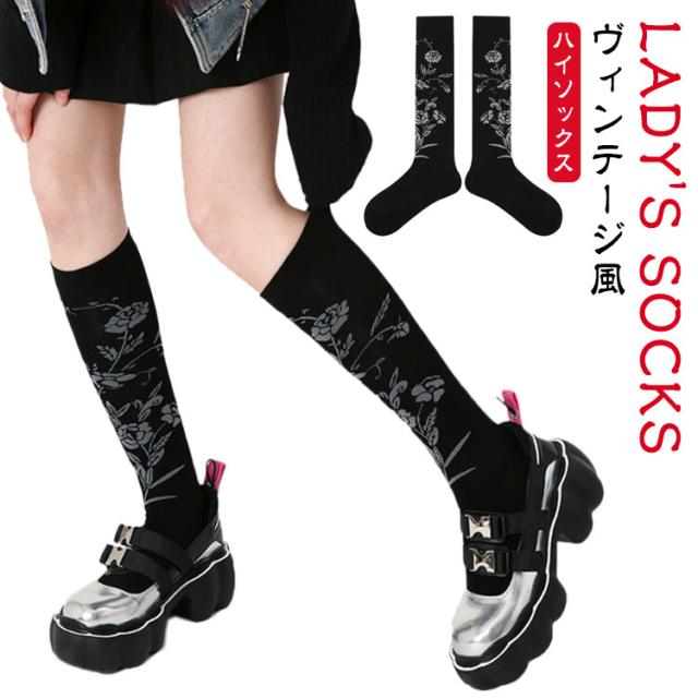 靴下 ソックス 靴下 秋冬 秋色 ロングソックス 靴下 北欧 靴下 ヴィンテージ風 ひざ下 レディース おしゃれ 花柄 花柄 ハイソックス ひざ下丈 靴下 レディース フラワー 靴下 ロングソックス