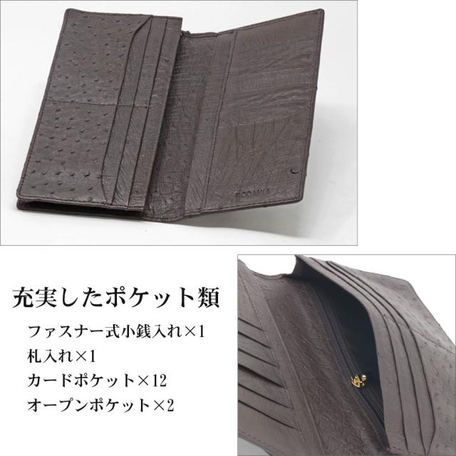 クリスマス (50%OFF)値下げしました オーストリッチ 天然皮革長財布 RODANIA(ロダニア) OJN1003BNE ニコチンカラー 高級皮革 ダチョウ おしゃれ 送料無料
