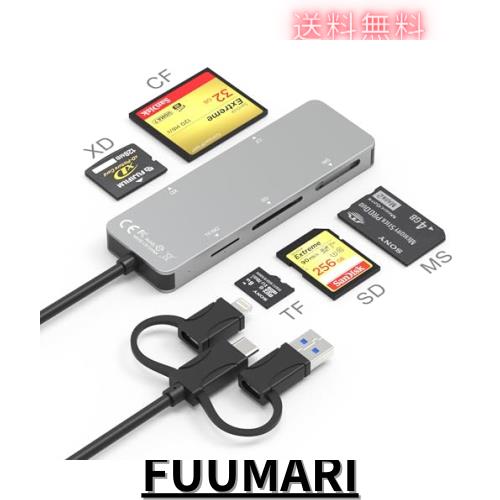 5 in 1 メモリカードリーダー、SD/TF/MS/CF/XD カードリーダー 互換性 iPhone、iPad、IOS、Andriod、マルチカードリーダー(Lightning+US