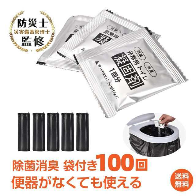 100回分 非常用トイレ 防災トイレ 消臭抗菌 防災用品 防災セット 防災グッズ 非常トイレ 簡易トイレ 携帯トイレ 非常用持ち出し袋 災害 備蓄 避難 凝固剤 防臭袋 アウトドア 介護用 防災 携帯トイレ 台風 洪水 災害時 断水時 簡単使用 長期保存
