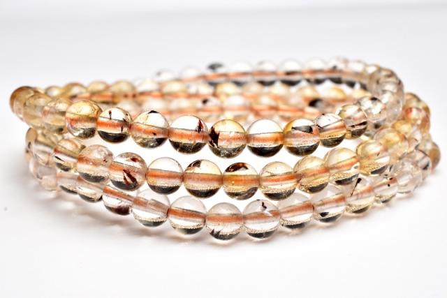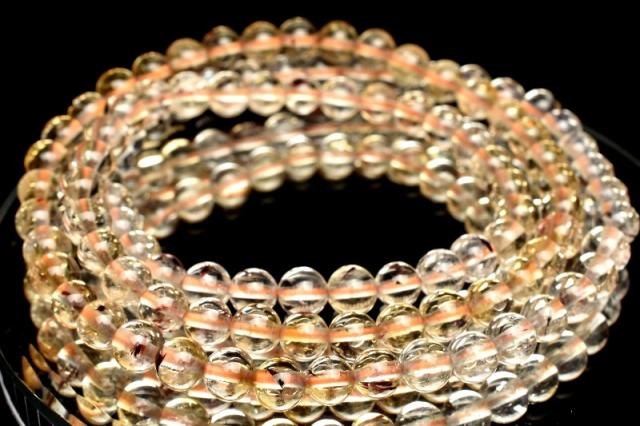【1点物】カコクセナイトインシトリン(ゲーサイトインクォーツ) 5.5mm 3連タイプ ブレスレット 【ネコポス送料無料】_L6024