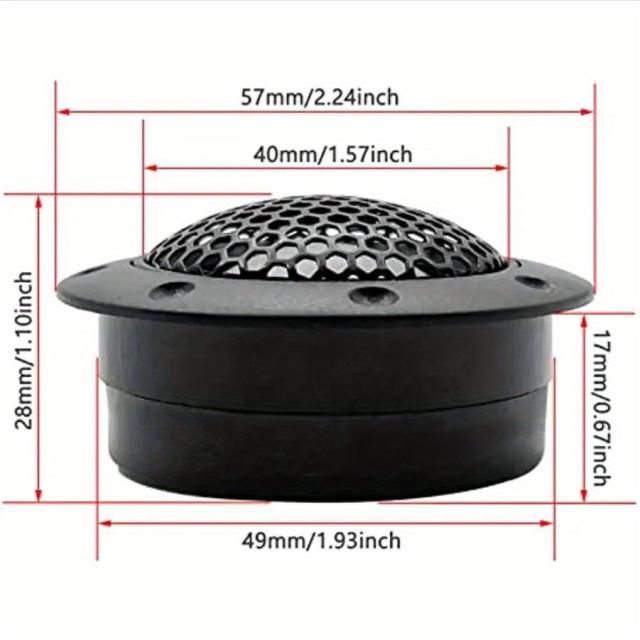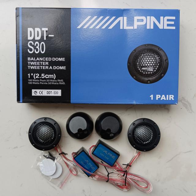Specification Type: DDT-S30 Material:Aluminum Magnet And Plastic Color:Black Max Power:180W , Voltage: 12V, Impedance: 4 Ω Sensitivity: 90 Db Frequency Response: 4000hz-26000hz External Diameter: 45mm, Opening Size: 4.3mm