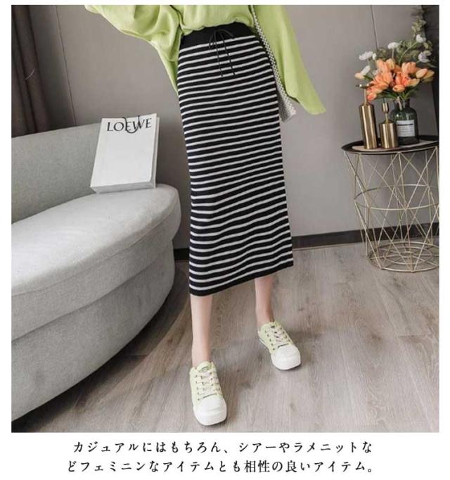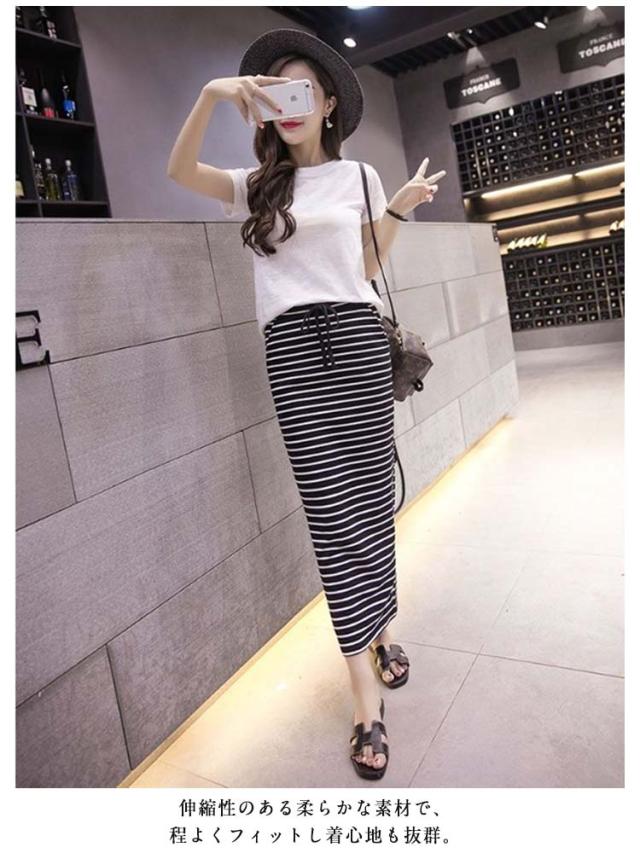 ロングスカート ボーダー柄マキシスカート ストライプ レディース リラックス マキシ丈スカート ウエストゴム ロング丈 Aライン ハイウエスト 伸縮性 ストレッチ性 脚長効果 細見え 着痩せ カジュアル キレイめ 体型カバー