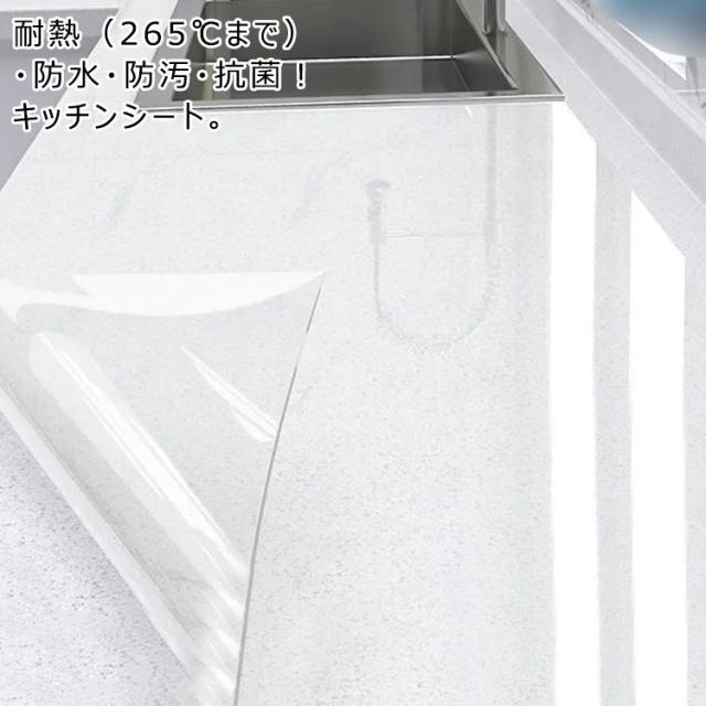 265℃までOK!耐熱 キッチンシート 防水 透明 保護シート クリア 台所 調理台 保護マット 防汚 防カビ 抗菌 シート キッチン用シート シンクマット 戸棚シート 汚れ防止 キズ防止 滑り止め 洗面台 壁紙 カットOK 接着剤不要 貼って剥がせる 賃貸
