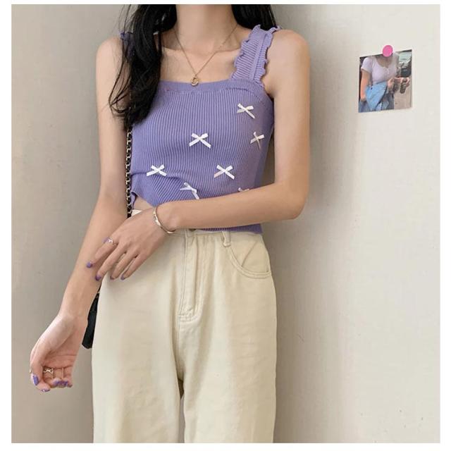 リボンサマーニット リブニット スクエアネック タンクトップ ノースリーブ 重ね着 インナー 夏 薄 ニット サマーニット ノースリーブ 涼しい 春夏 レディース レイヤード リブ トップス ブラック ホワイト ブルー ピンク ベージュ パープル グリーン