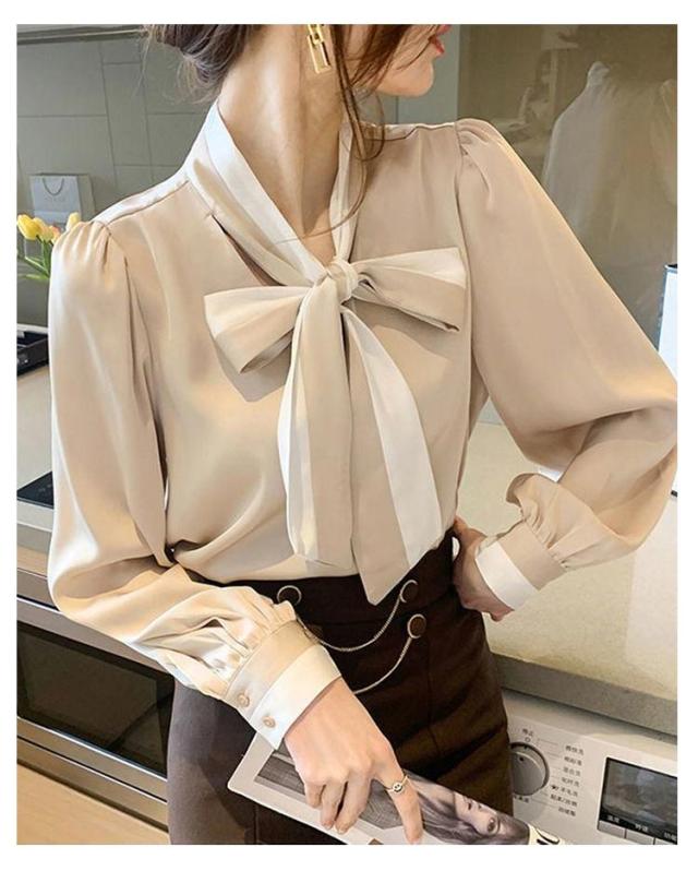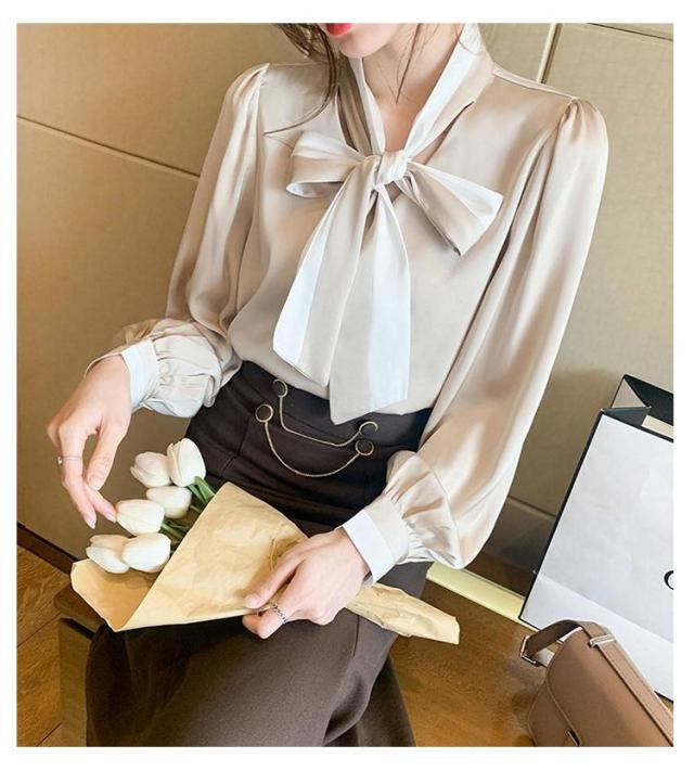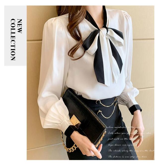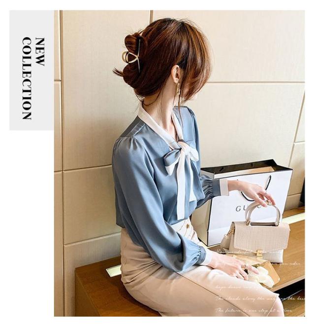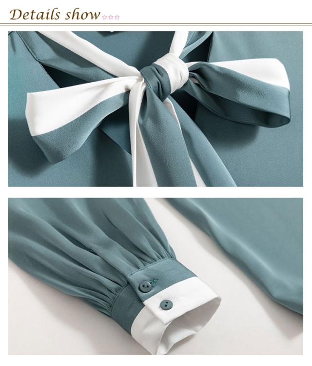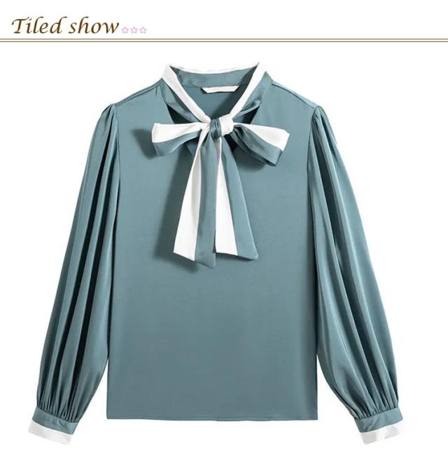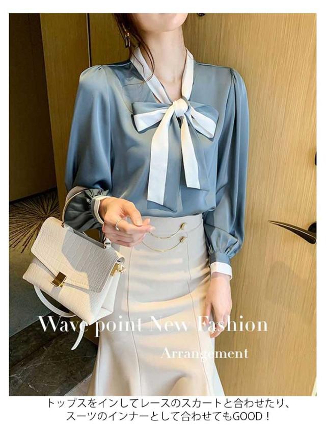 配色ボウタイブラウス レディース トップス シャツ ブラウス 長袖 ボウタイリボン リボン ボウタイ 配色 ボウタイブラウス きれいめ デート お出掛け オフィス 通勤 OL 日常 エレガント 卒業式 入学式 入園式 フォーマル