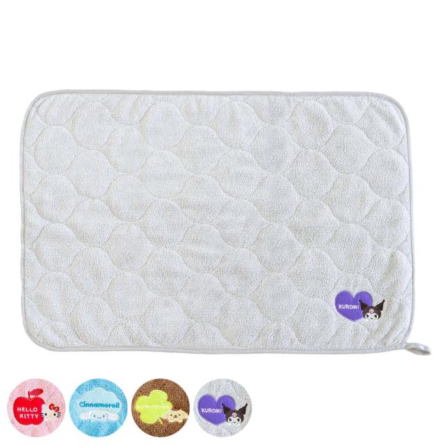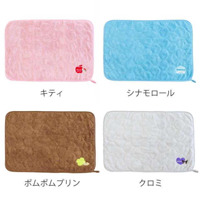サンリオキャラクターのワンポイントのアップリケがかわいい、足ふきマットです。キティ、シナモロール、ポムポムプリン、クロミの4キャラクター展開で、その日の気分で使い分けることもできます。さらふわなタオル生地で、気持ちいい使い心地になっています。