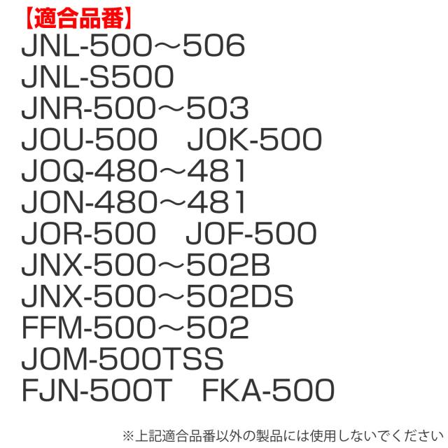 | 適合品番 | JNL-500〜506、JNL-S500、JNR-500〜503、JOU-500、JOK-500、JOQ-480〜481、JON-480〜481、JOR-500、JNX-500〜502B、JNX-500〜502DS、JOF-500、FFM-500〜502、JOM-500TSS、FJN-500T、FKA-500 |