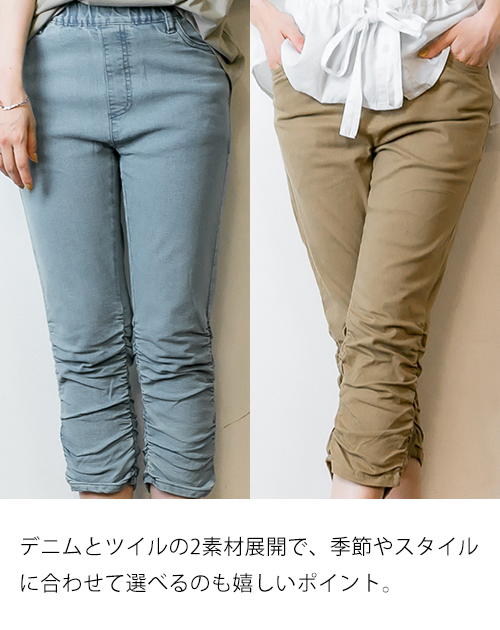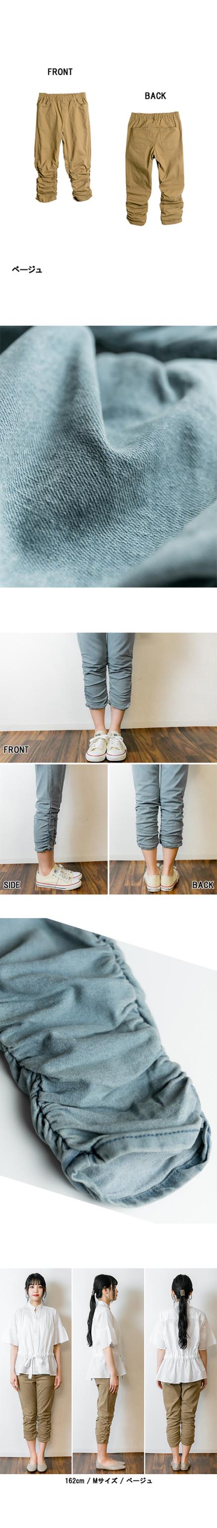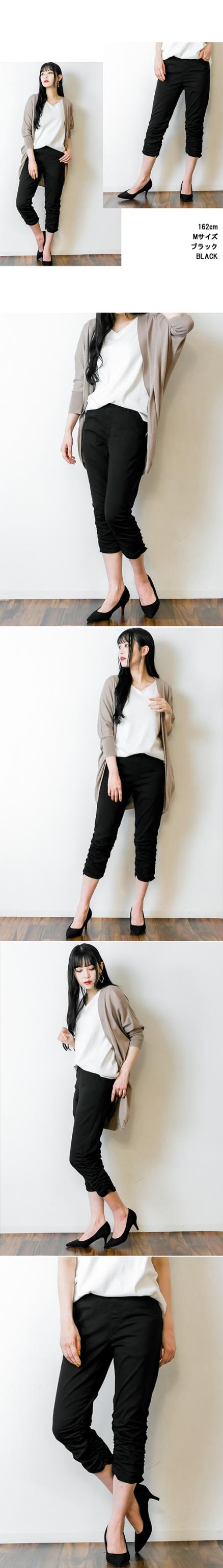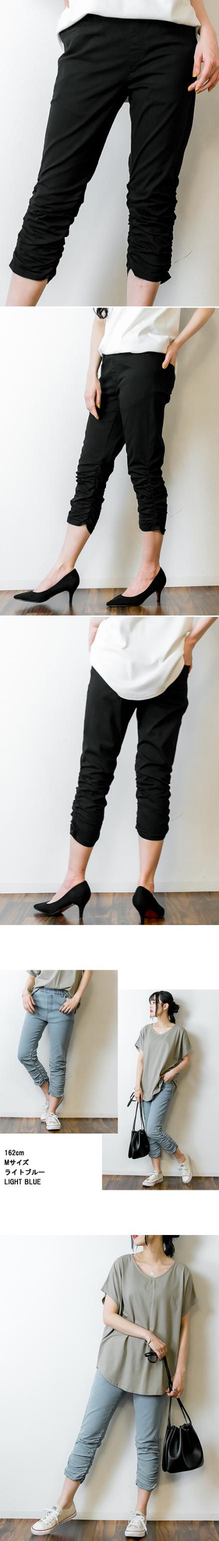 冬新作 裾くしゅ美脚パンツ レディース 7分丈 七分丈パンツ 動きやすい ウエストゴム 大きいサイズ レディース M L LL 3L 4L 黒 ベージュ ネイビー ブルー
