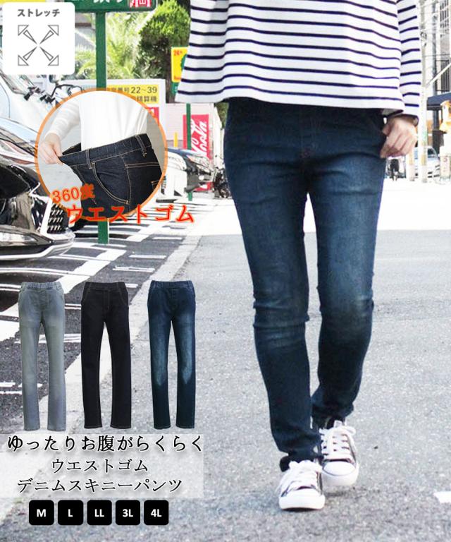 秋新作 大きいサイズ レディース 総ゴムウエスト スキニーパンツストレッチ 伸縮 スキニー デニム 美脚 可愛い 大きいサイズ ネイビー 青 M L XL XXL LL 3L 4L