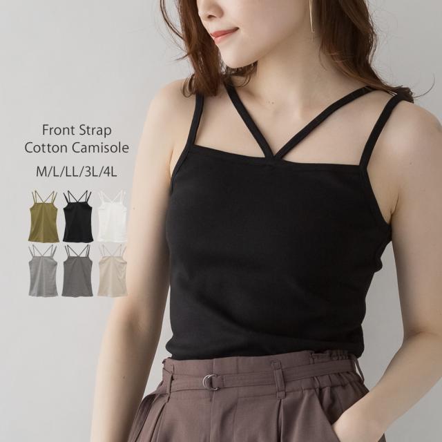 秋新作 大きいサイズ レディース コットンフライスフロント紐キャミソール レディース 大きいサイズ