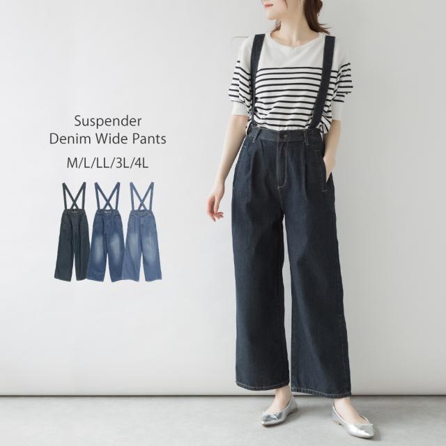 取り外せるサスペンダーデニムワイドパンツ