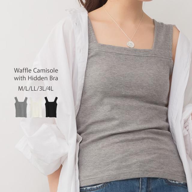 春新作 大きいサイズ レディース ブラ隠しワッフルタンクトップ レディース 大きいサイズ