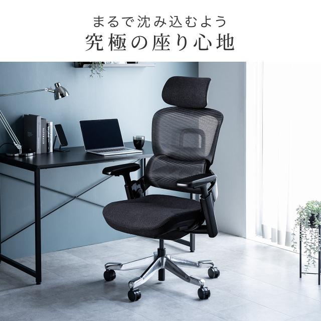 ⇒ご購入の前にご確認下さい座り心地の良いふかふかで肉厚のウレタンクッションを採用したエルゴノミクスメッシュチェア。腰かけると沈み込むような印象のクッションで長時間座り続けてもお尻が痛くなりにくい仕様。背もたれはハイバックで上下分割タイプ。ランバーサポートは腰の部分を押しだすくらい前に出る仕様。体重感知式シンクロロッキングを採用。【WEB限定送品】