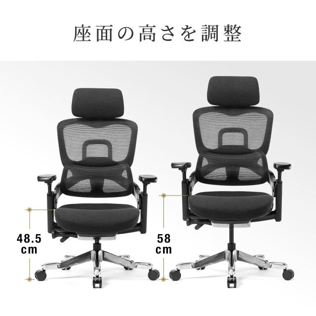 エルゴノミクスチェア メッシュチェア シンクロロッキング 4Dアームレスト 座面スライド式 ウレタンクッション 背もたれ上下調整 上下可動ヘッドレスト ランバーサポート 大型ナイロンキャスター[150-SNCM39]