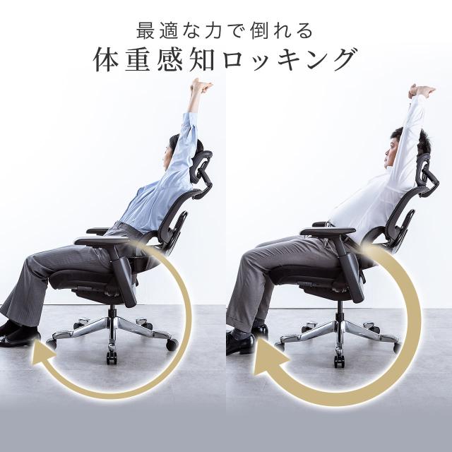 ●シンクロスライドロッキング方式を採用、体重感知式で座った人に合わせて強さが変化します。