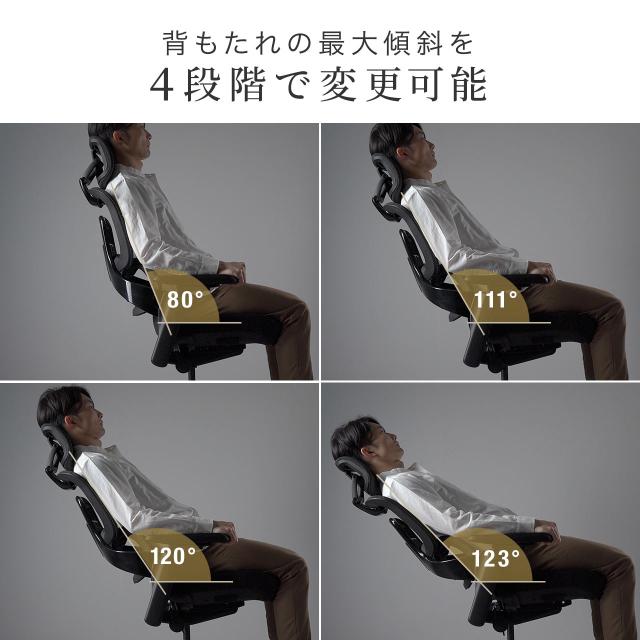 ●二段になっている背もたれのランバーサポートは腰の位置に合わせて上下調整が可能。