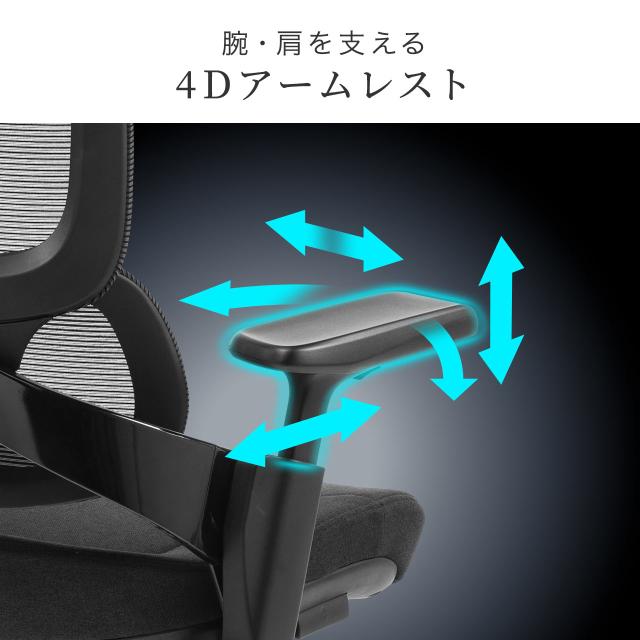 ●上下前後左右稼働可能な4Dアームレストを採用しています。