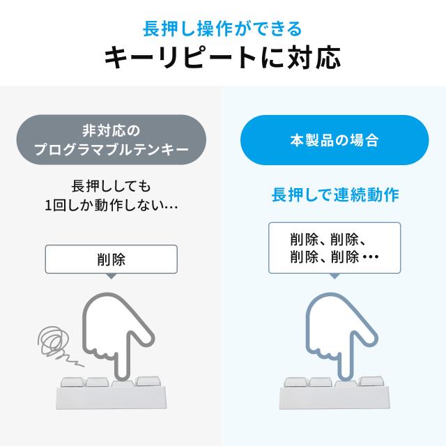 ●割り当てたキーの長押し操作ができるキーリピートに対応しています。