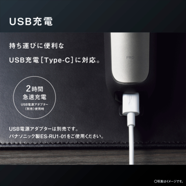 USB電源アダプター(別売):急速約2時間充電電圧 AC100〜240V 50-60Hz 使用電池 リチウムイオン電池(600mAh) 本体サイズ 高さ18.0×幅7.2×奥行5.7cm(キャップを除く) 本体重量 約210g(キャップを除く) 付属品 ポーチ、USBケーブル(Type-A-Type-C)、専用オイル、掃除用ブラシ パワーコントロール ラムダッシュAI+(※1) 泡メイキングモード 〇 ヘッド部 密着5Dヘッド