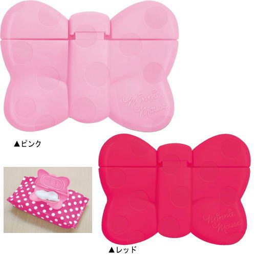 (おまかせ便で送料無料)(2個セット ピンク ×1 レッド×1)ディズニー携帯用ウエットティッシュふた ミニーマウス(リボン) 日本製 おしりふき