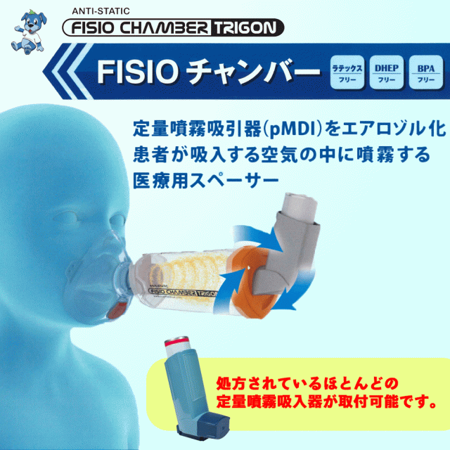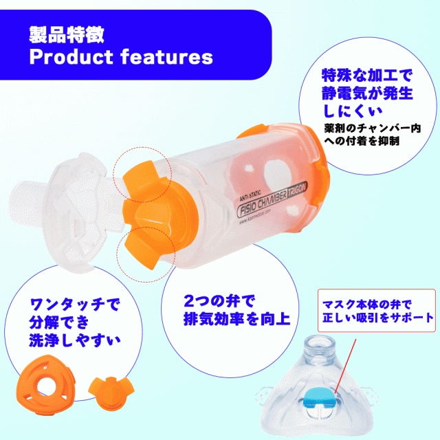FISIO チャンバー スペーサー KM-1031B KM-1033B 吸入補助器 吸入補助具 スペーサー 吸入 補助器具 ネブライザ— 補助 子ども 吸入器 子供 吸入補助【専用マスク付(小児用/成人用選択)】