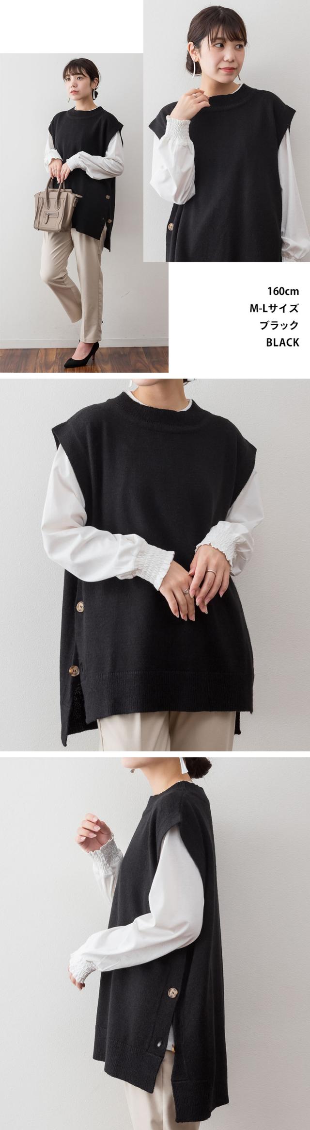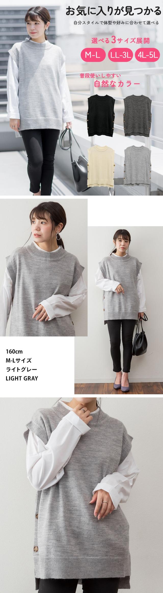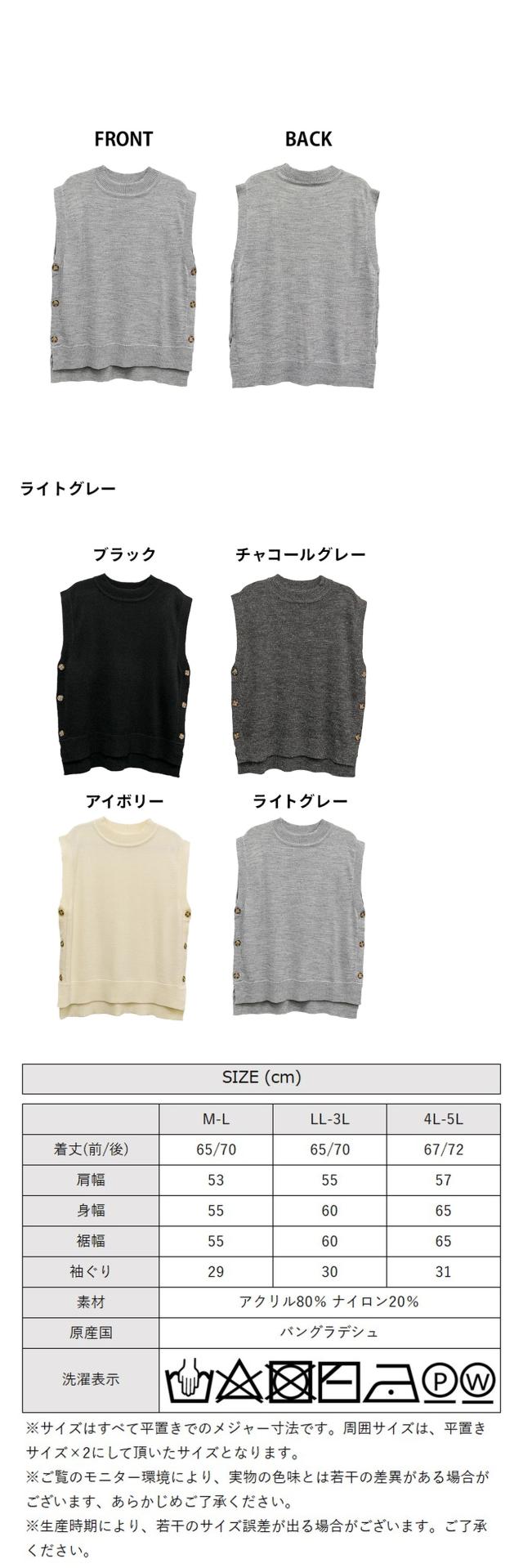 【月初SALE】冬新作 大きいサイズ レディース サイドボタンベスト ノースリーブ レイヤード ジレ トップス M L LL 3L 4L 5L 白 黒