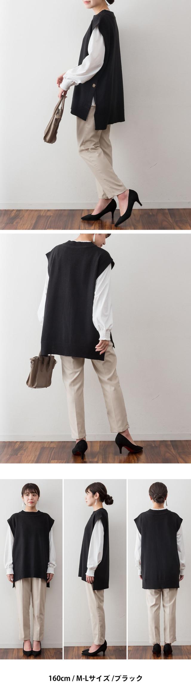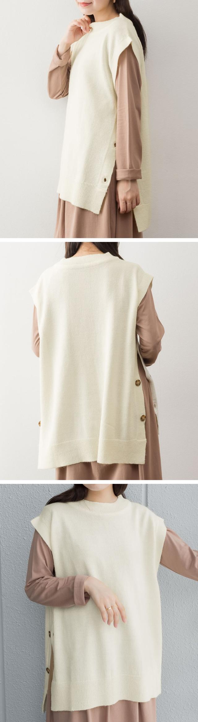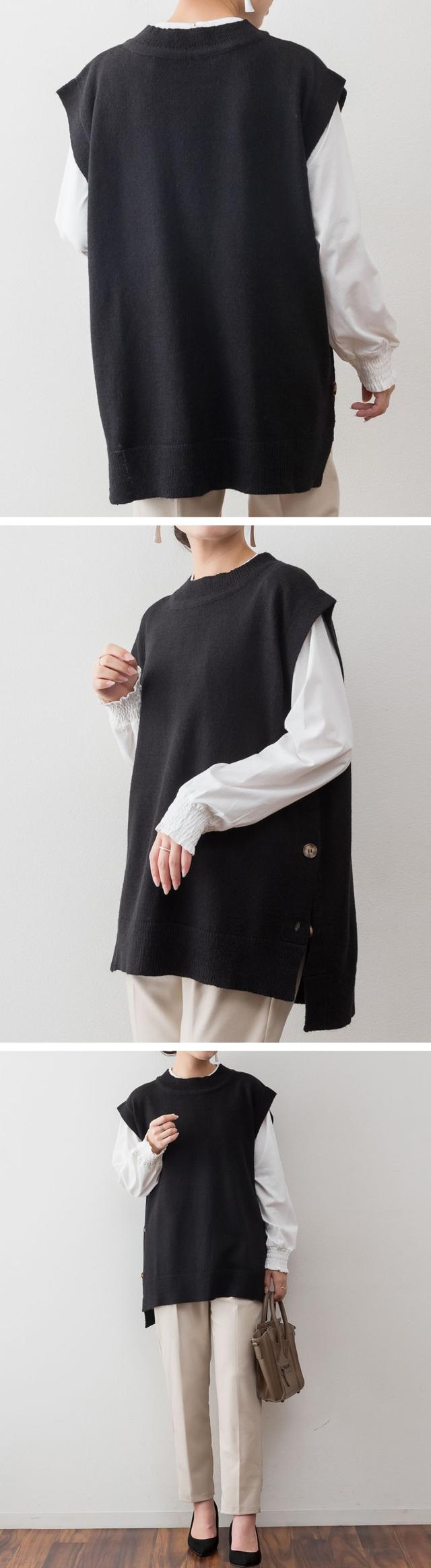 【月初SALE】冬新作 大きいサイズ レディース サイドボタンベスト ノースリーブ レイヤード ジレ トップス M L LL 3L 4L 5L 白 黒