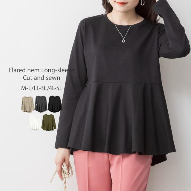 秋新作 大きいサイズ レディース 裾フレア長袖カットソー トップス Tシャツ 長袖 ロンT カットソー 秋 冬 レディース 大きいサイズ