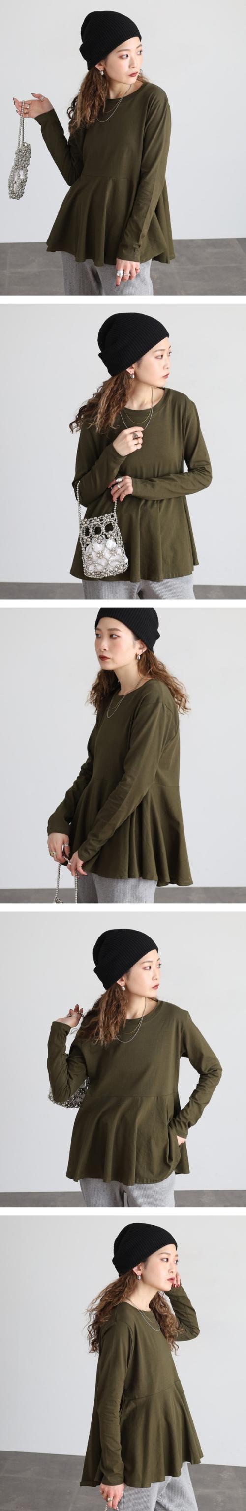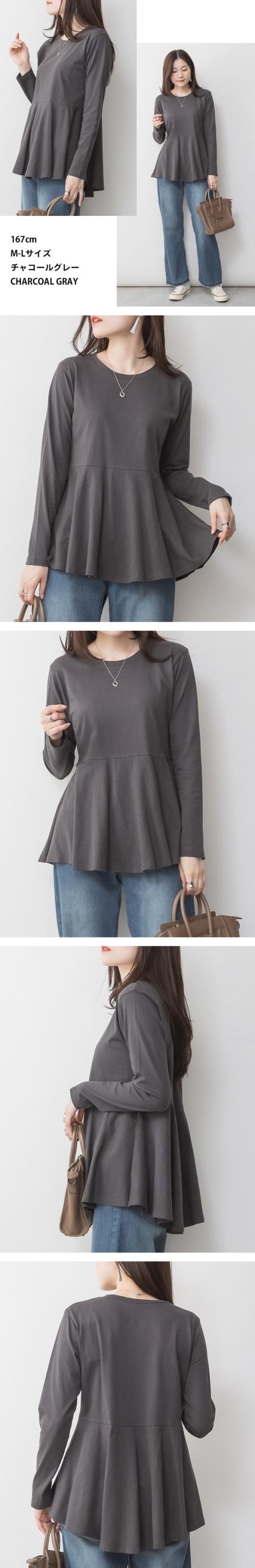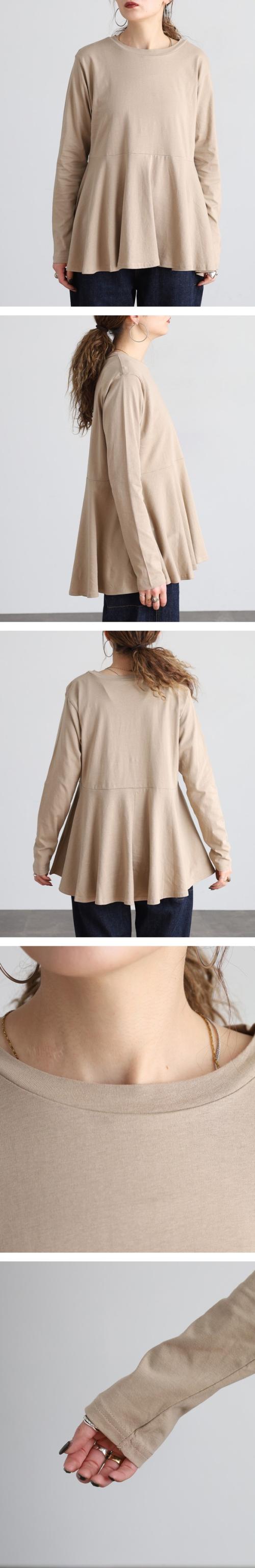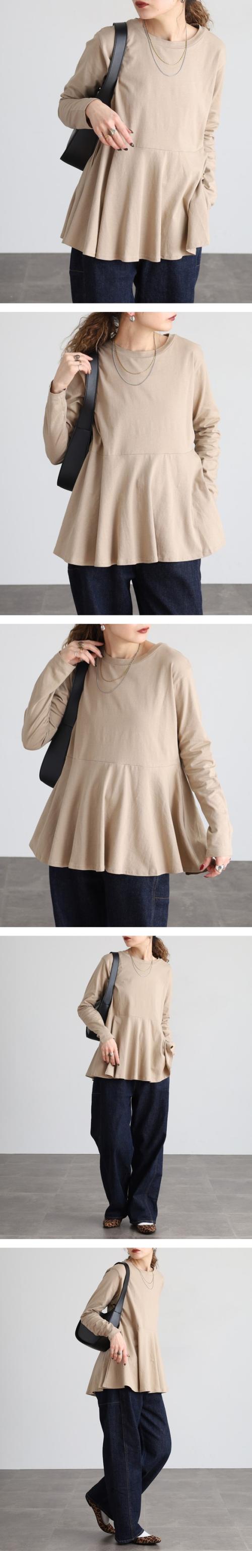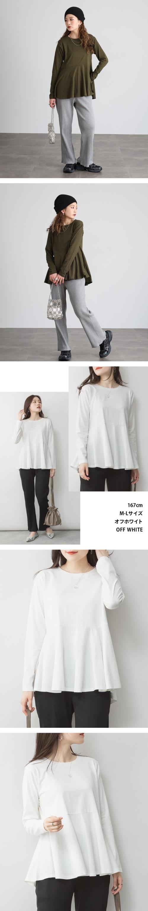 裾フレア長袖カットソー◇POINT女性の柔らかさを表現する裾フレアデザインが秀逸。前後差のあるシルエットでヒップまでカバー出来て、ゆったりと着られます。一枚だけ着てても十分魅力的なカットソーです。◇SIZEM〜5Lまでの豊富なサイズ展開で大きいサイズ・ワイドサイズ対応も嬉しいポイント!サイズ展開が豊富なので、ワンサイズアップでビックシルエットでの着こなしもおすすめです!◇FABRIC耐熱性・吸水性・通気性に優れ、柔らかな肌触りのコットン。◇COORDINATEシンプルにデニムパンツ(ジーンズ)やイージーパンツ、ワイドパンツに合わせるカジュアルスタイルも◎カラーパンツやスラックス、スリットスカートやタイトスカートと合わせてきれいめフェミニンにも好相性!サマージャケットやロングジレ、ニットカーディガンなどとのレイヤードスタイルにもぴったり♪こなれ感をプラスしてキャスケットやバケットハット、ミニバッグやスマホショルダーなどの小物を合わせるのもおすすめです。