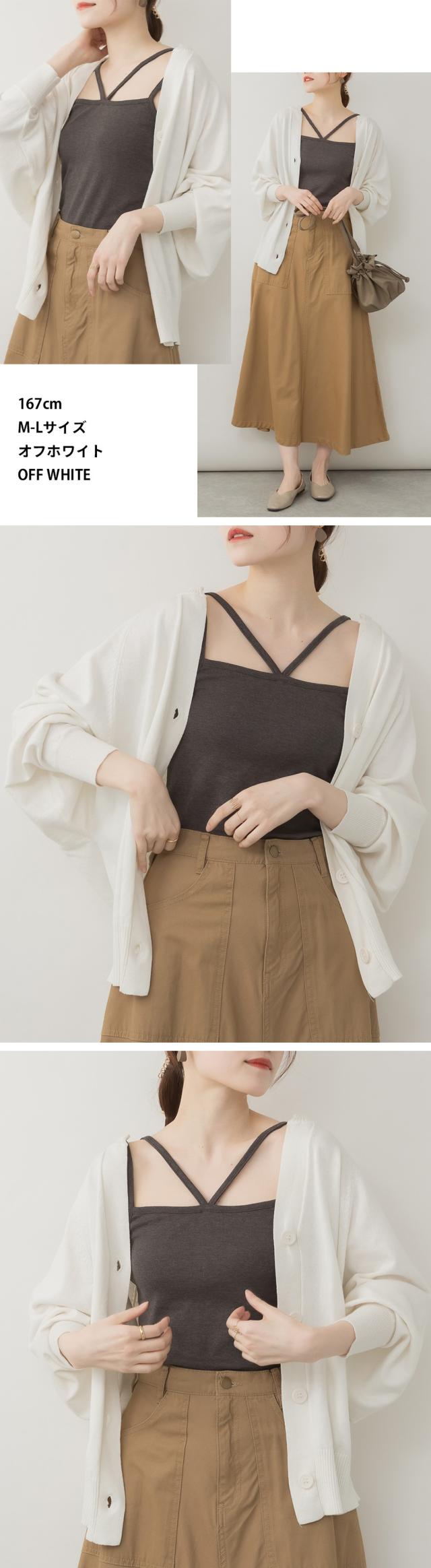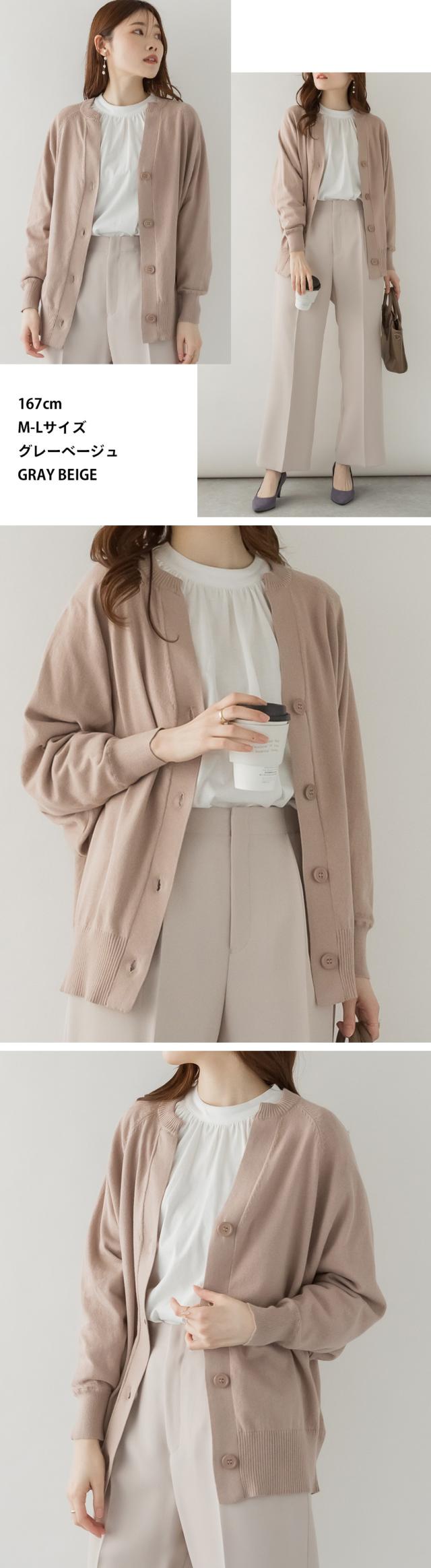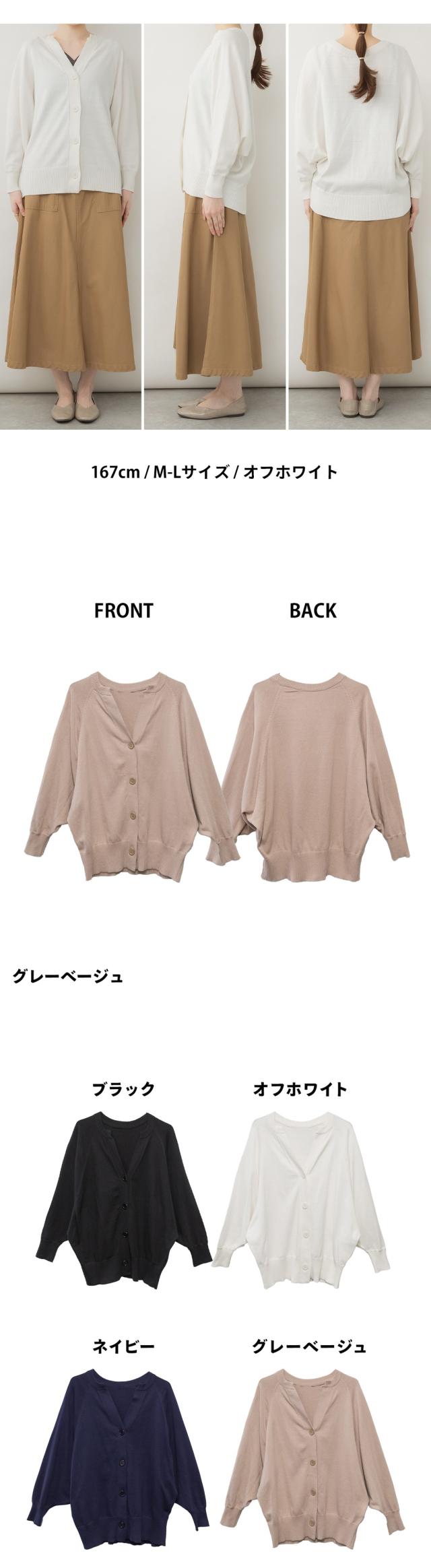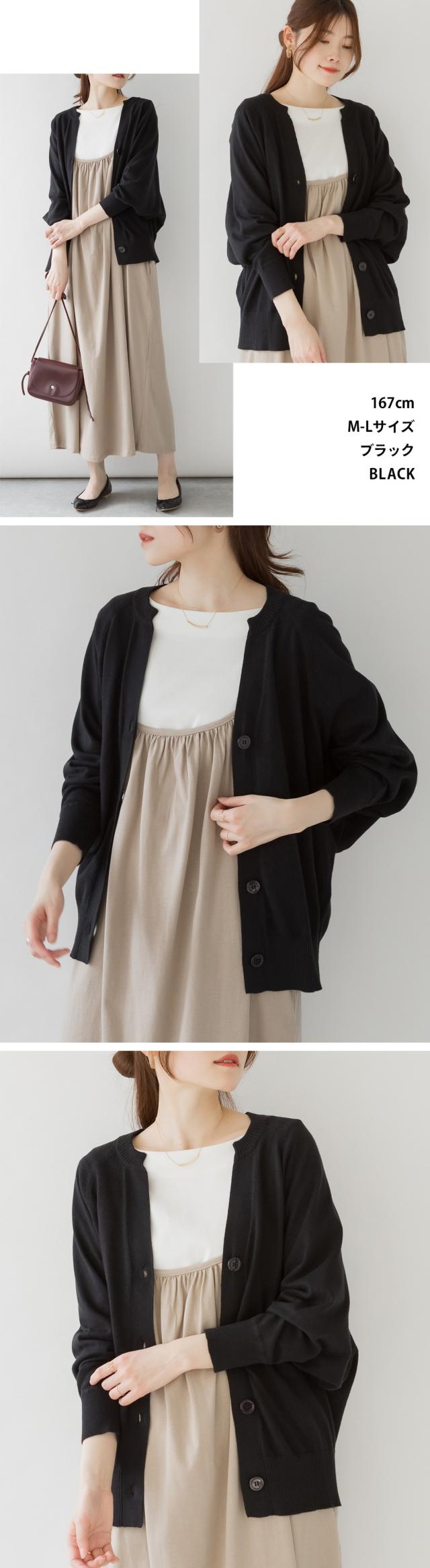 | ゆったりとしたドルマンスリーブが抜け感を演出するカーディガン。程よく開いたキーネックが顔まわりをすっきり見せ、シンプルながら大人っぽい印象に。綿100%のやわらかな生地は肌なじみがよく、春秋の羽織りや冷房対策にも活躍します。前を閉じてプルオーバー風に、開けてラフに羽織ってと、着こなしの幅が広がる一枚。ボリューム袖のトップスにも重ねやすい、余裕のある身幅も魅力です。 |