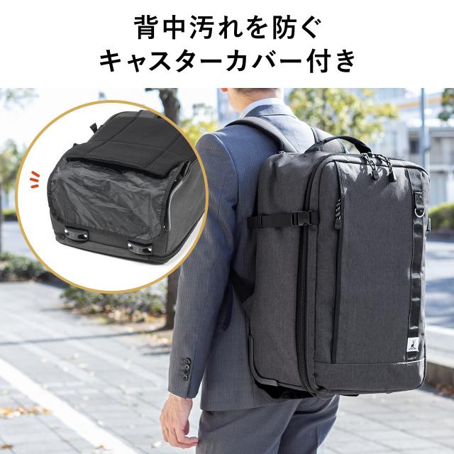 キャスター付きリュック キャリーリュック キャリーバッグ 2WAY 機内持ち込み 大容量 35L キャプテンスタッグ キャスターカバー チェストベルト ブラック グレー[200-BAGCR007BK]