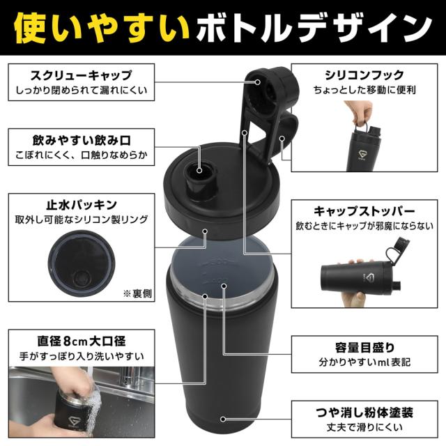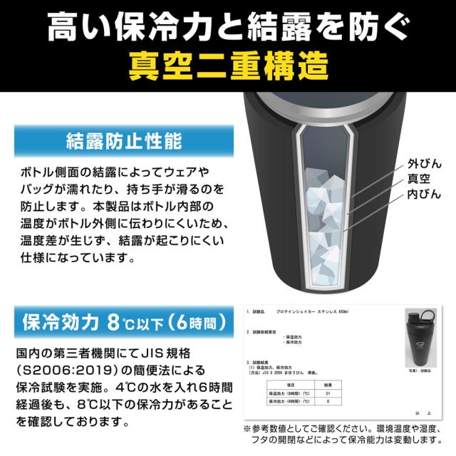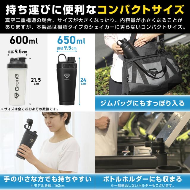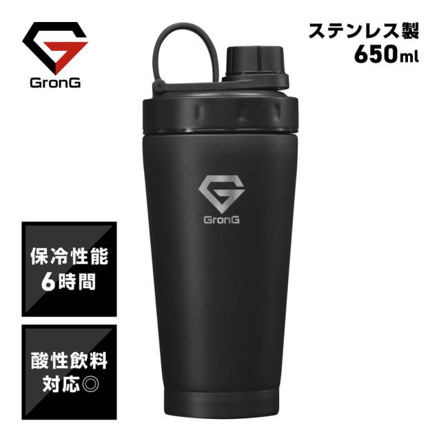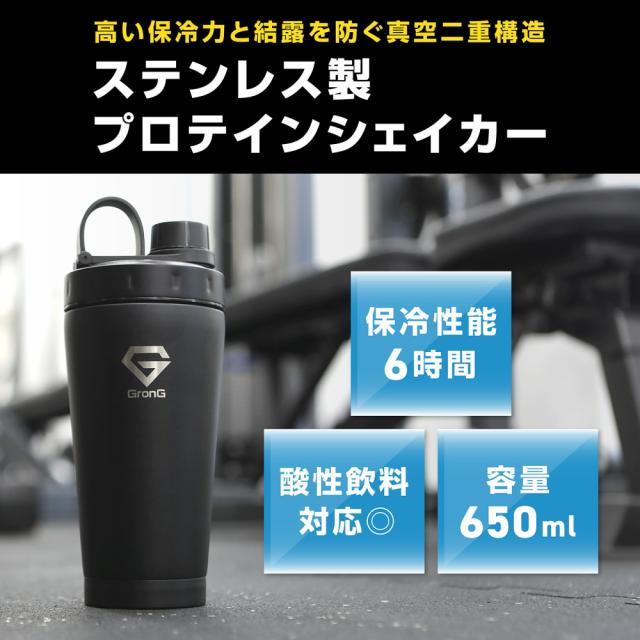 グロング プロテインシェイカー ステンレス製 650ml 保冷ボトル シェイカーボトル BCAA EAA対応