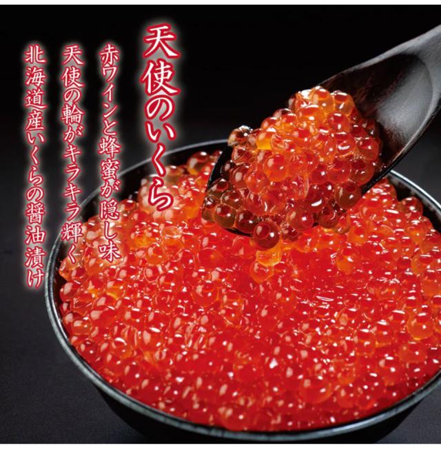 いくら醤油漬け、アトランティックサーモン(ノルウェー)、はちみつ、ワイン/調味料(アミノ酸)、酸化防止剤(亜硫酸塩、V.C)、酸味料、安定剤(アカシア)、(一部に小麦・いくら・さけ・さば・大豆を含む)