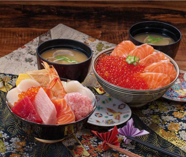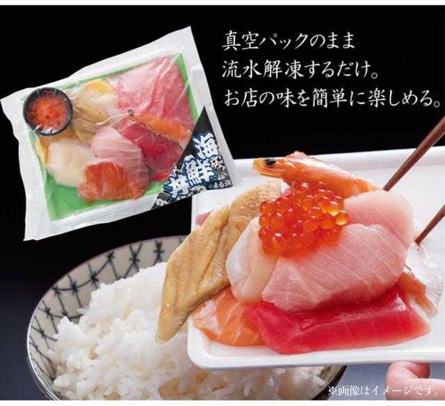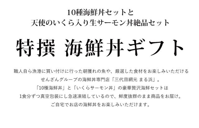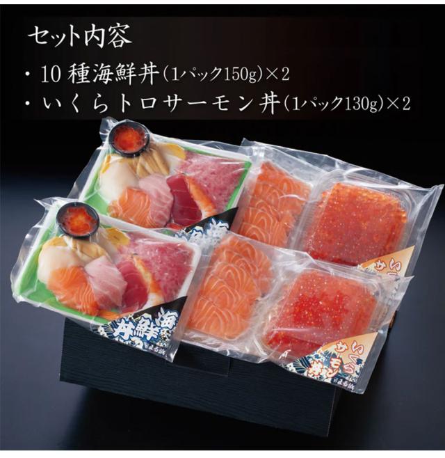○内容量:10種の魚介が入った海鮮丼セット(150g×2)、いくらサーモン丼セット(130g×2)