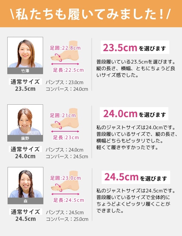 取り扱いサイズ:23cm 23.5cm 24cm 24.5cm 25cm